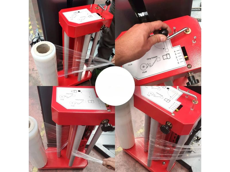 La macchina è alimentata elettricamente e necessita di una potenza energetica di 1 Kw e adotta un tensionamento del film tramite una frizione meccanica (posizionata sulla parte superiore del carrello portabobina) regolabile manualmente dall'operatore.