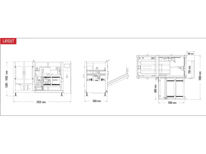 Una testa di presa con ventose, azionata da un gruppo Venturi, preleva la scatola dal magazzino laterale trattenendola durante l’apertura, che avviene mediante un sistema a contrasto. La chiusura inferiore della scatola è effettuata con tramite nastro adesivo, mentre tutte le regolazioni vengono eseguite manualmente tramite volantini.Questo modello è disponibile nella versione destra o sinistra e gestito da PLC Siemens con touch screen.