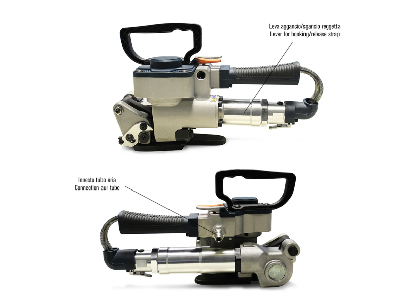 Il Tendireggia pneumatico CLEOPATRA 230 PNEUMATIC è una reggiatrice che effettua la saldatura della reggetta tramite vibrazione (riscaldamento per attrito). Utilizza reggetta in poliestere PET con larghezza mm. 13 - 16 - 19 e 19 - 25 con spessore max. mm. 1,5. Ergonomica leggera e di facile utilizzo, è adatta per la chiusura di ogni genere di imballo piano. Particolarmente apprezzata nei settori logistici e dalle piccole-medie imprese.